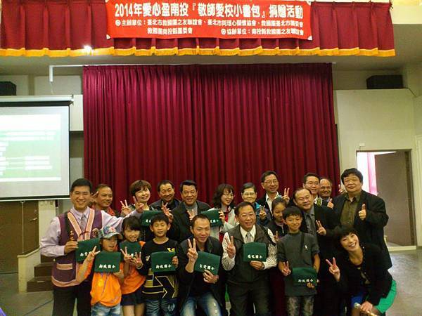 救國團南投縣團委會昨(6日)偕同臺北市團友會辦理2014年愛心盈南投「敬師愛校小書包」捐贈活動,獲得廣大迴響,魚池鄉鄉長陳錦倫及各校校長均參與本次活動。